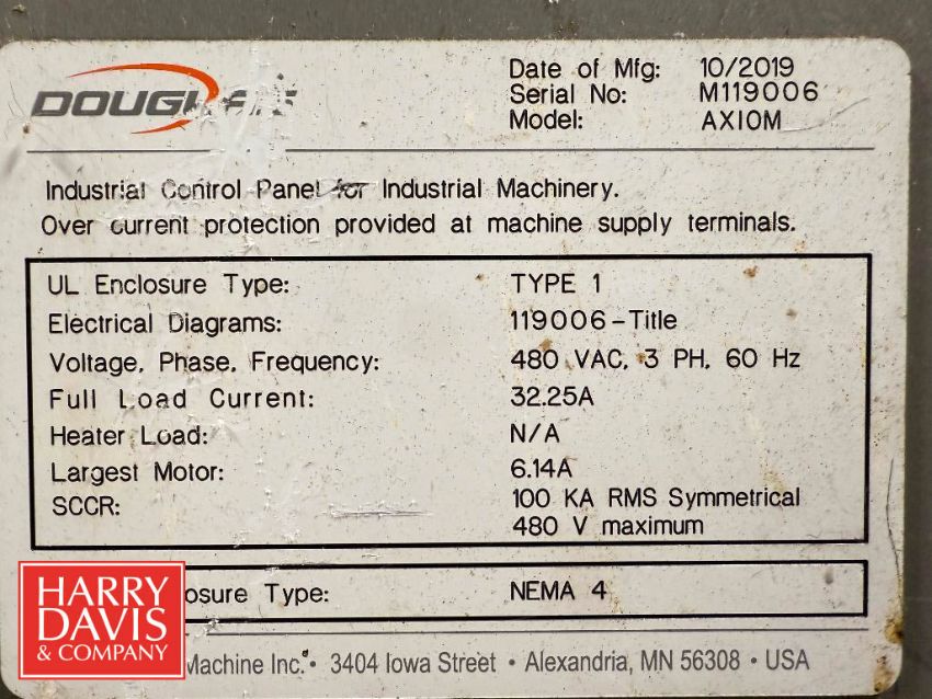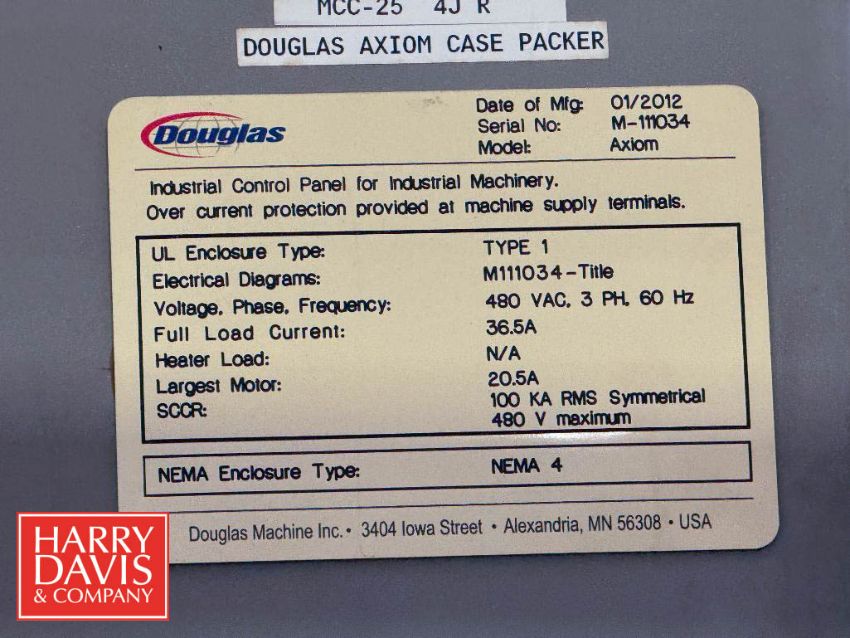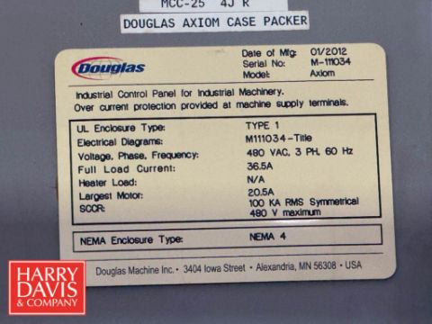 2019 Douglas Corrugated Case Packer, Model: AXIOM, S/N: M119006 (for Quart, .5 Gallon and Gallon @ 45-60 Cases/Per Minute) (Location: Elma, NY)