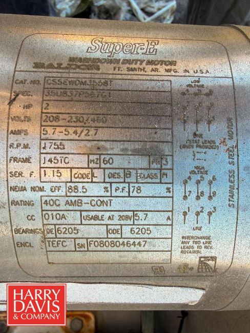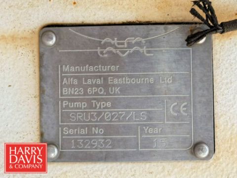 Alfa Laval Positive Displacement Pump, Model: SRU3/027/LS, S/N: 132932 with Baldor 2 HP 1,755 RPM Motor: Mounted on S/S Base (Location: Visalia, CA) - Rigging Fee: $500