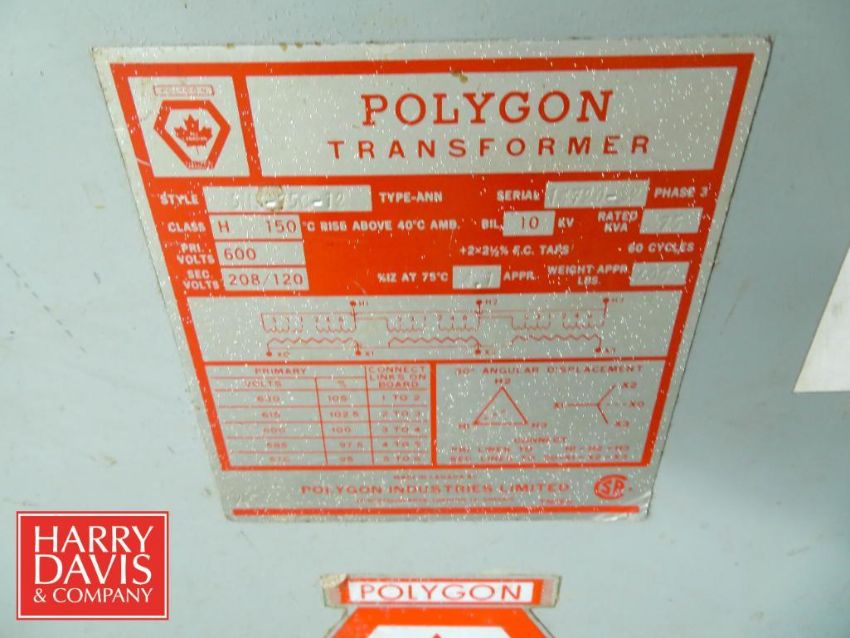 Polygon Transformer, 75 Kva, 600 Volts, 208/120