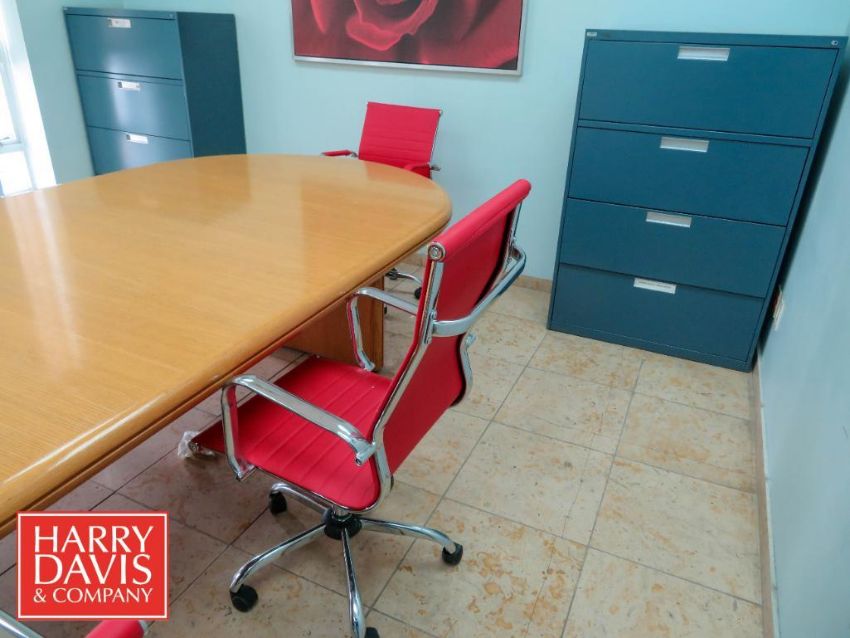 Complete Room, Including: Conference Table: 16’ x 5’, (8) Chairs, (2) Lateral File Cabinets, Decorative Cabinet and Pictures