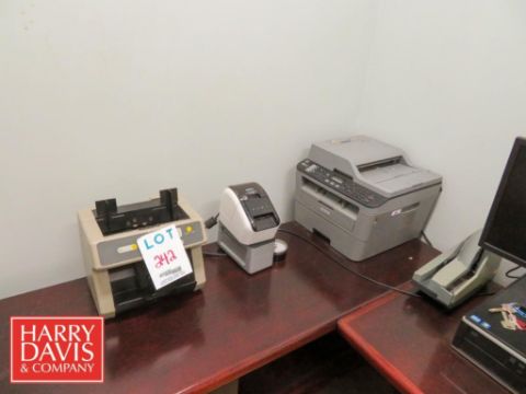 “U” Shaped Desk: 72” x 106” x 71”, Computer with Monitor, Printer, Chair and Frisco Bay Money Counter