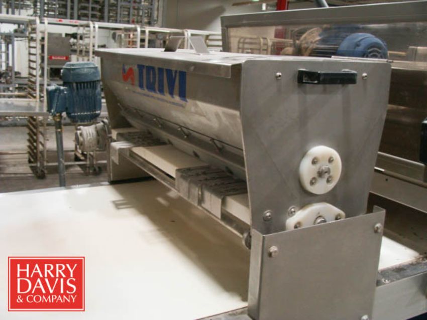Trivi Croissant Line, Including: Top/Bottom Flour Duster Multi Roller, Flour Duster, Cross Roller, (2) Gauge Rolls: 33", Duster Rubber Band Feeder, Forming Table and Underneath Pan Feed System