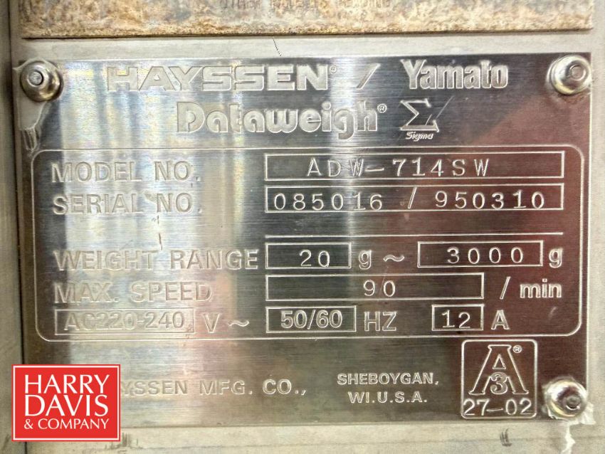 Hayssen Dataweigh S/S 14-Bucket Scale System, Model: ADW-714SW, S/N: 085016/950310 with Spare Parts