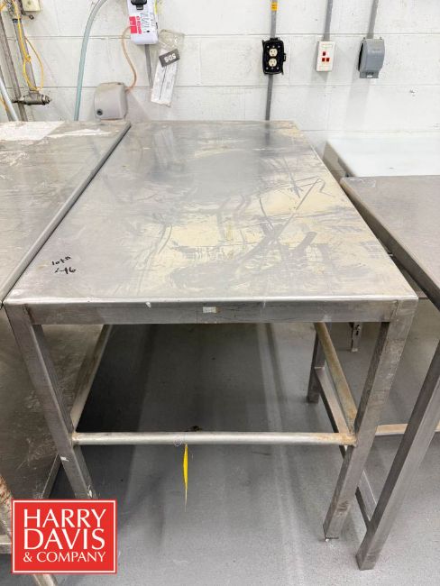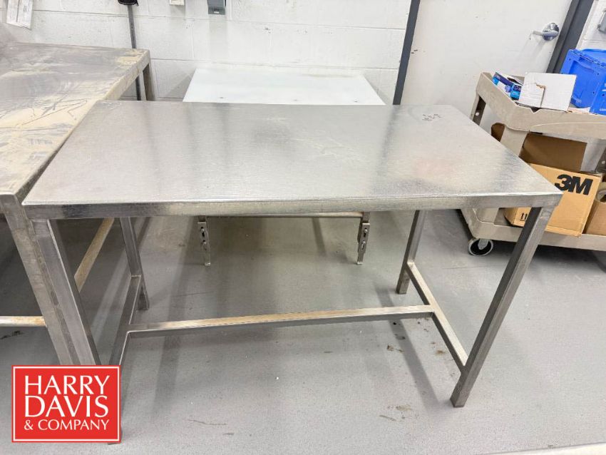 S/S Tables: 56" x 28" x 36" Height, 4' x 25.5" x 36" Height