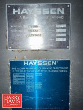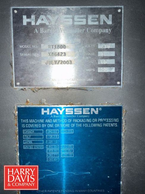 Hayssen Horizontal Form and Seal Cheese Package Machine: 14’ Length, Model: RT1800, S/N: X86423