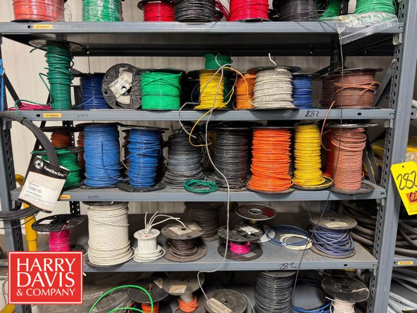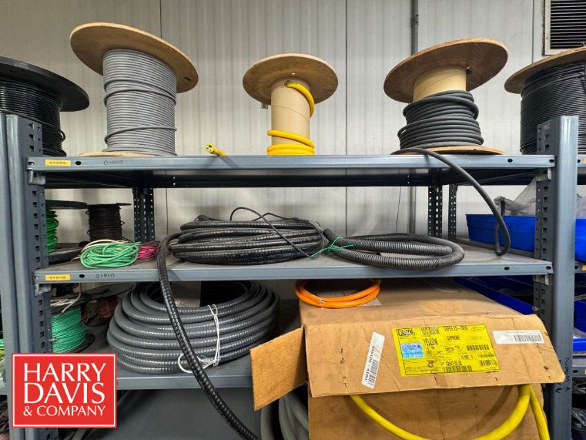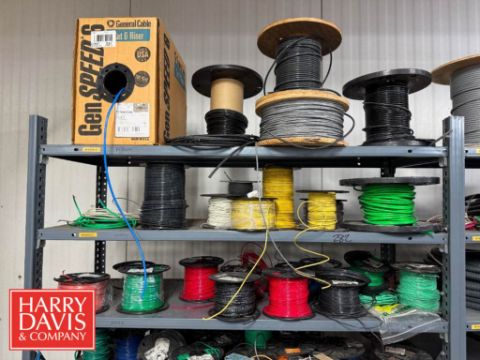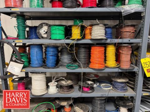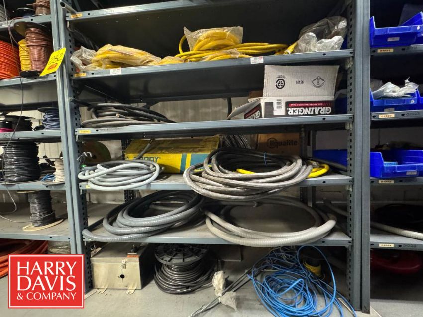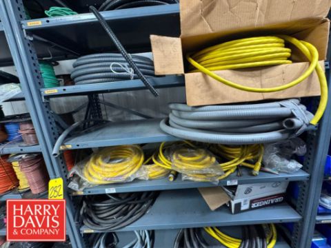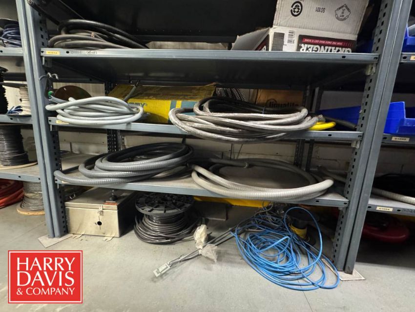 Racks with Assorted Parts, Including: Copper Wiring with Ass Voltages and Male and Female PVC Cord