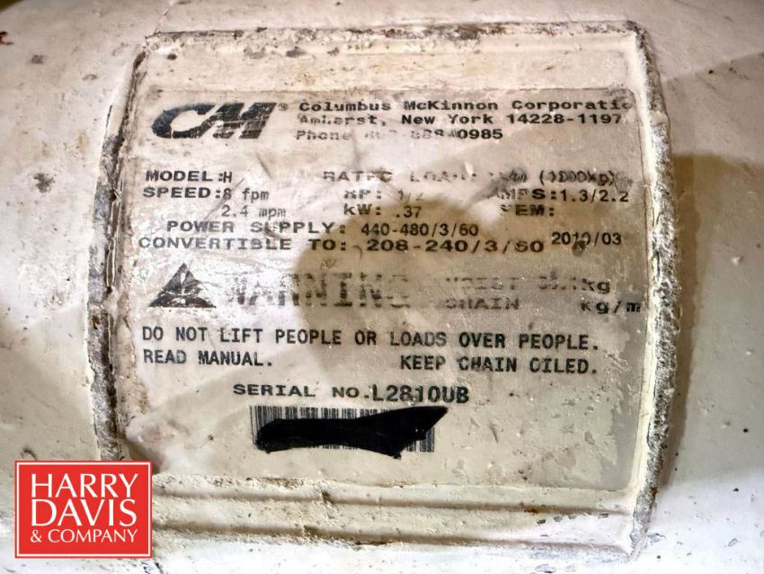 C&M 1 Ton Electric Powered Chain Hoist with Trolley
