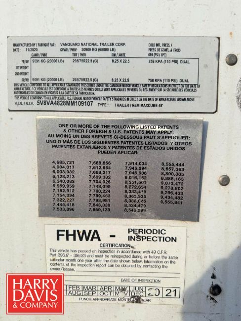 2020 Vanguard National 48' Semi Trailer, Model: REM Maxcube, VIN#: 5V8VA4828MM109107