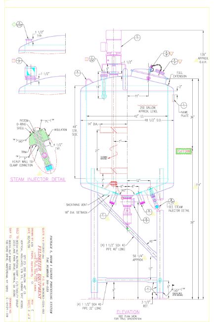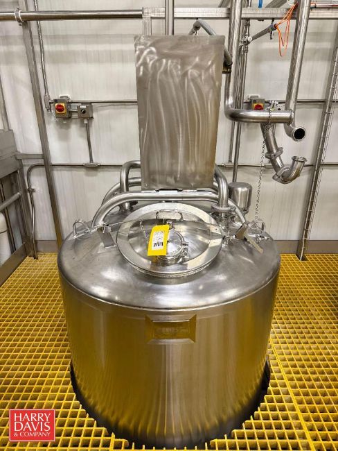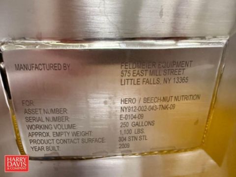 Feldmeier 250 Gallon S/S Dome-Top, Dish-Bottom Mix Tank, S/N: E-0104-09 with Bottom Steam Injection, Vertical Agitation, Adjustable Baffle, Waukesha Cherry-Burrell Air Valve and Sensor (Location: Export, PA) - Rigging Fee: $975