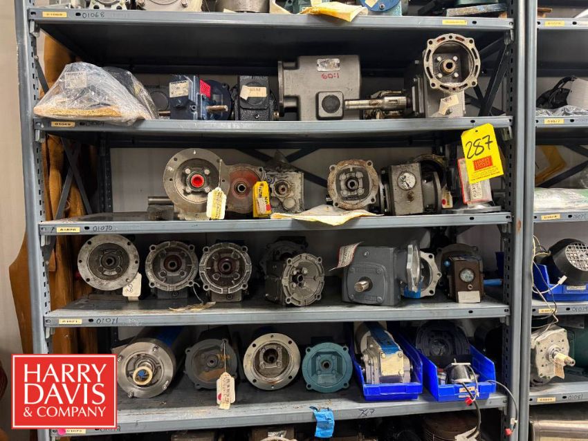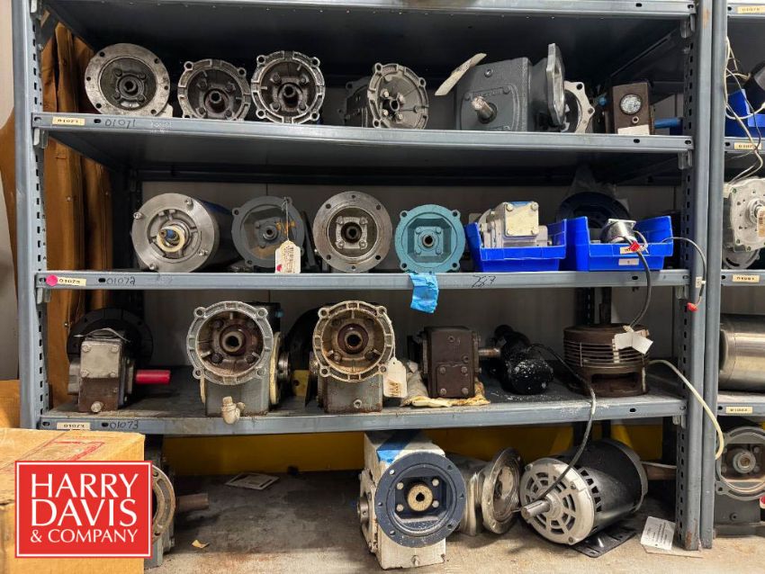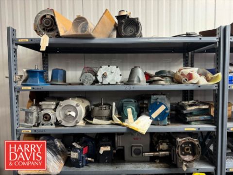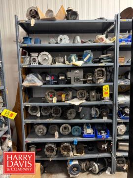 Rack with Assorted Motors: 3-5 HP, Assorted Gear Boxes and Gear Reducers