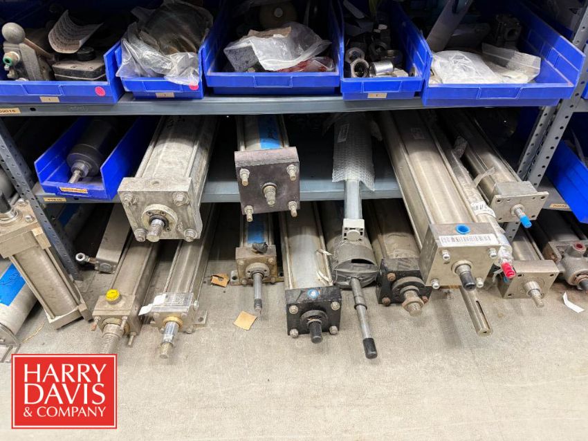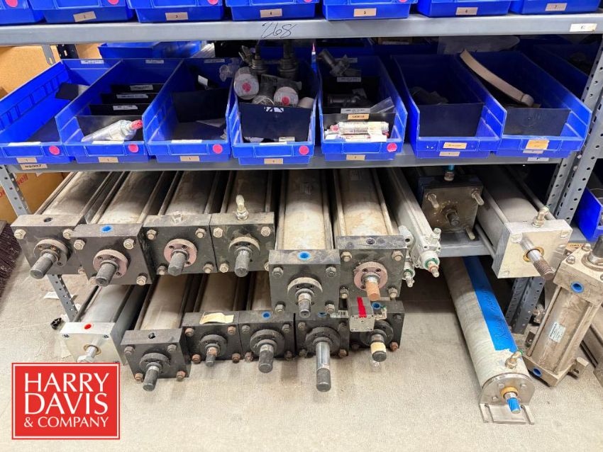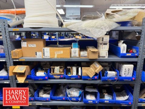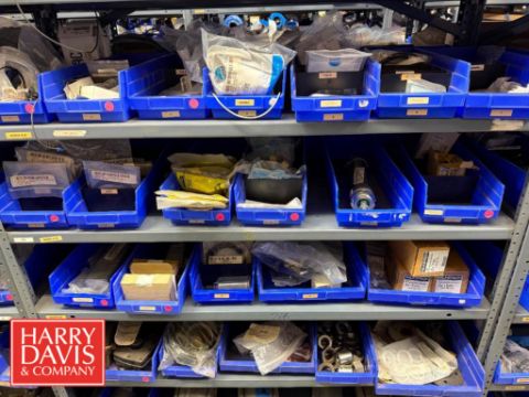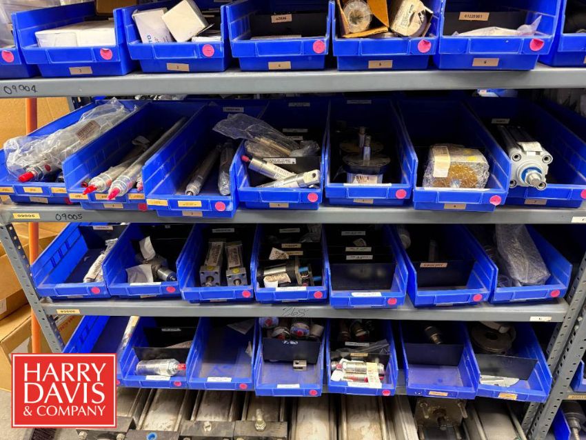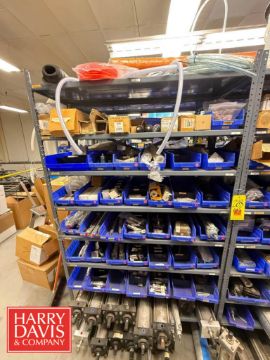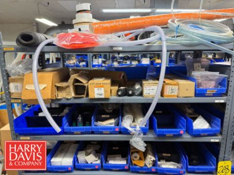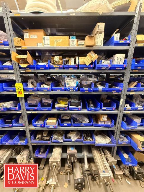 Racks with Assorted Parts, Including: Valves, Filters, Cylinders, Solenoid Valves, Regulators, Switches, Bow Guard Assembly and Seal Kits