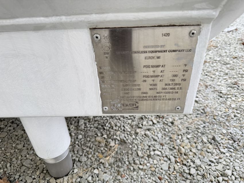 2015 Walker 2,500 Gallon S/S Jacketed Tank, Model: HHT, S/N: WEP-13512 with S/S Front and Vertical Agitation (Location: Export, PA) - Rigging Fee: $800
