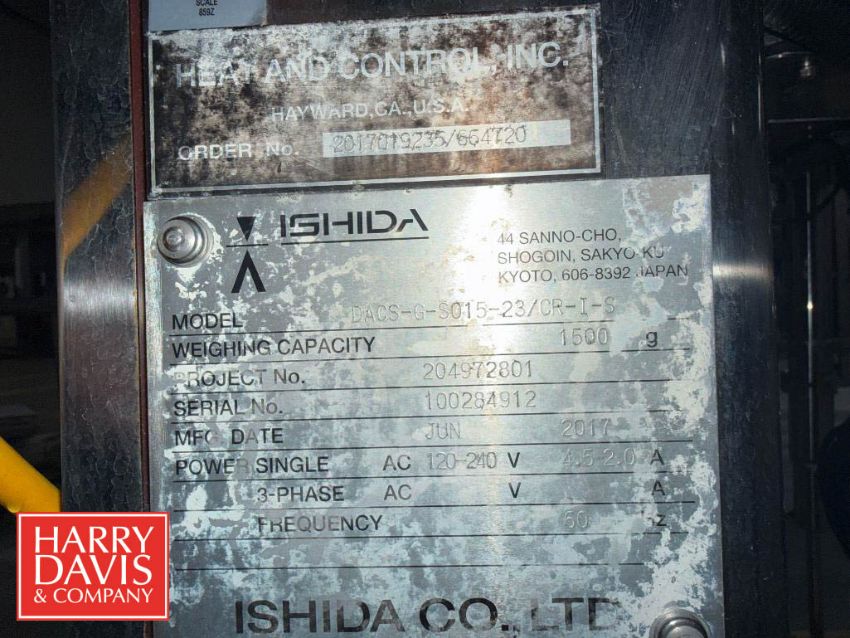 Ishida 1,500 Gram Capacity S/S Variable Speed Checkweigher, Model: DACS-G-S015-23/CR-I-S, S/N: 100284912