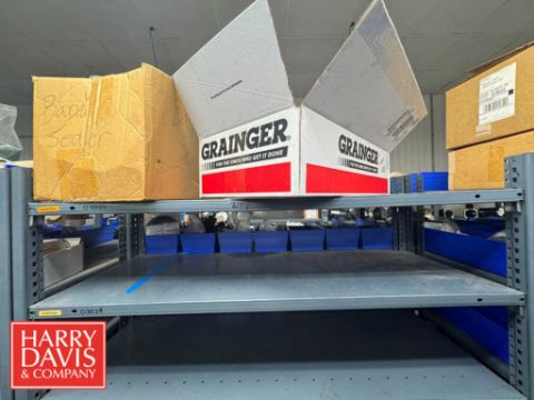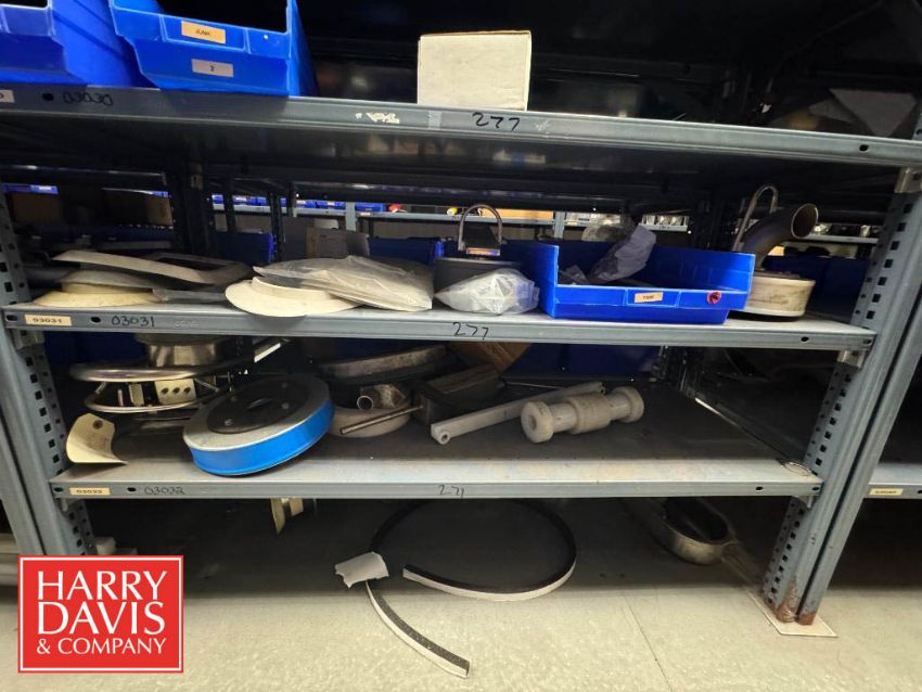 Racks with Assorted Parts, Including: Nuts, Filters, Conduit, Head Springs, Tension Springs, Flap Hoppers, Gaskets, Cable, Screw Kit, Fuses, Gaskets and Control Panel