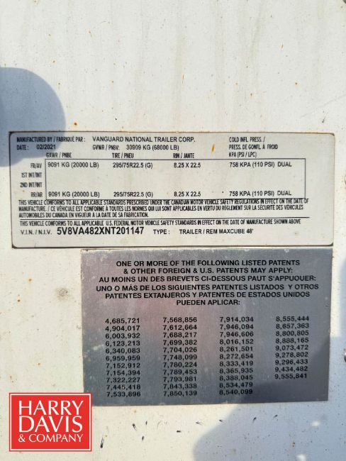 2021 Van Guard National 48' Semi Trailer, Model: REM Maxcube, VIN#: 5V8VA482XNT201147