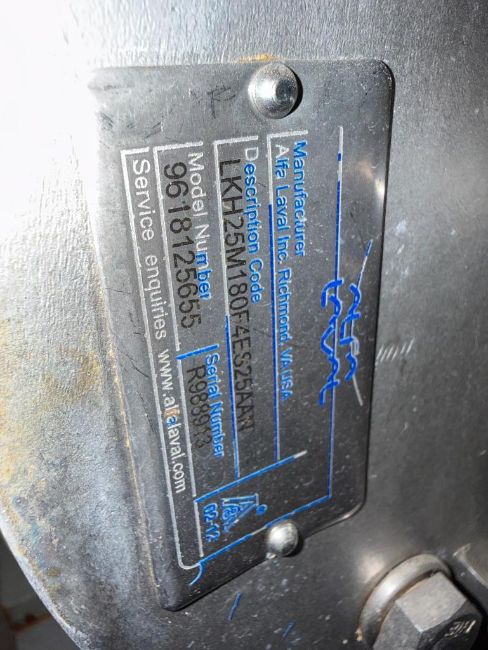 Alfa Laval Centrifugal Pump , Model: 9618125655 with 15 HP 3,510 RPM Motor