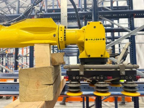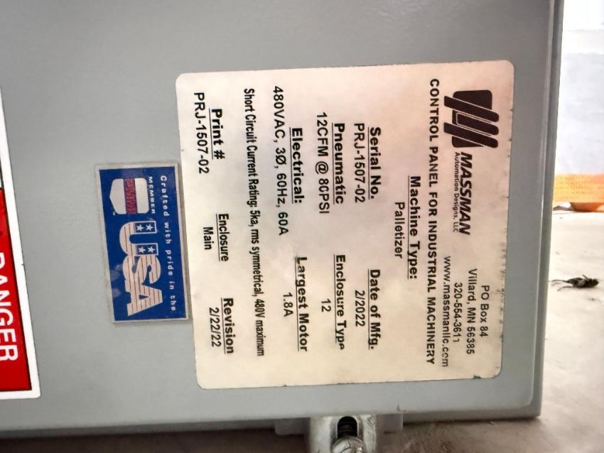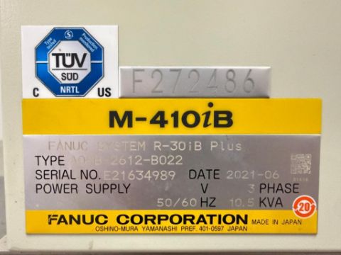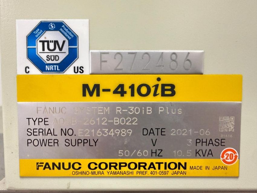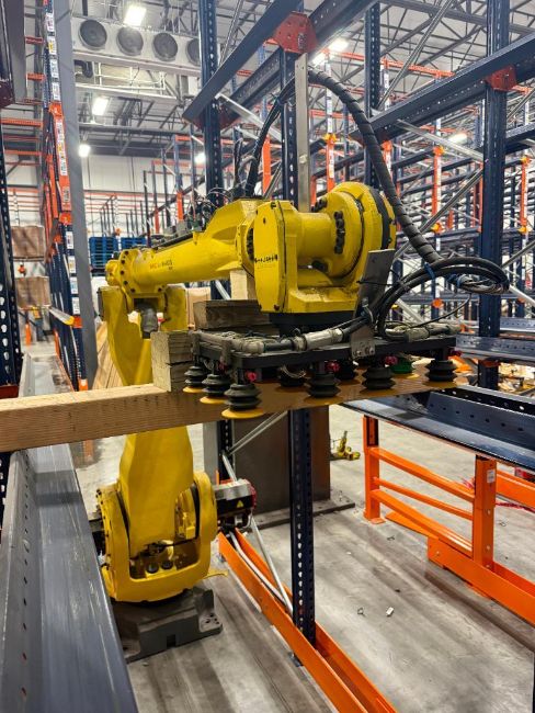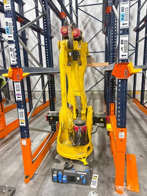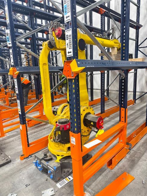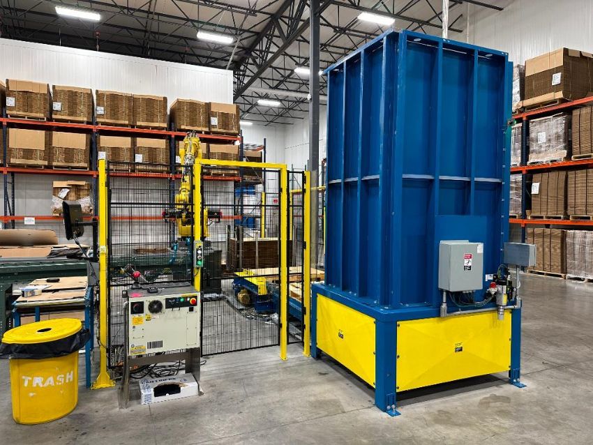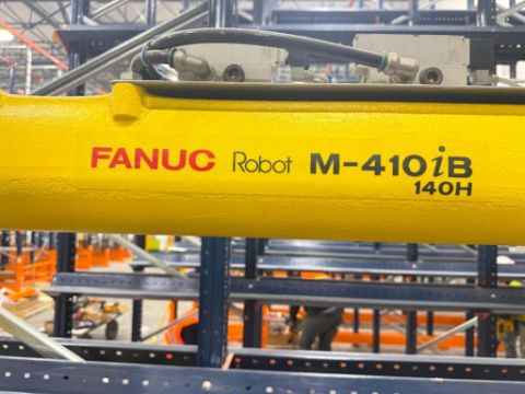 Robot Palletizing System with Fanuc M-410iB 140H Robot, Safety Cage and Pallet Magazine Feed System