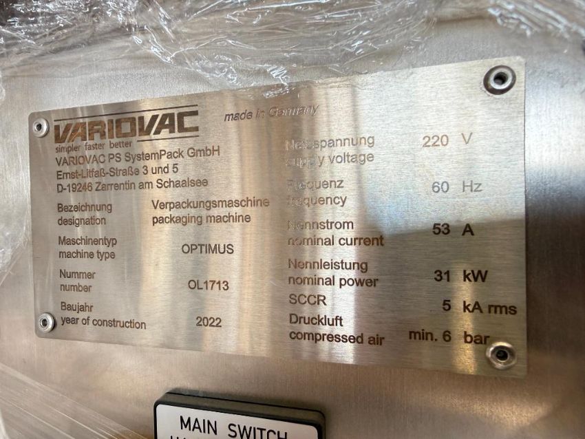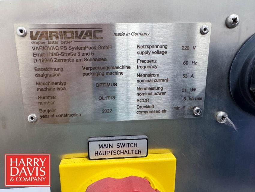 2022 Variovac Optimus Thermoformer, S/N: 0L1713