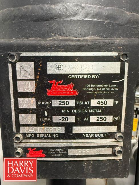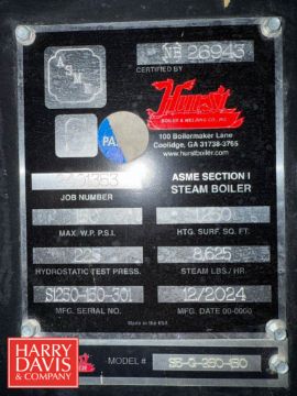 2024 Hurst 250 HP ASME Section-1 Steam Boiler, S/N: 51250-150-301 (Subject to BULK BID: Lot 60) (Location: Casa Grande) - Rigging Fee: $10,000