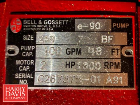 Bell and Gossett Pump, Model: 2A5 with 2 HP 1,800 RPM Motor