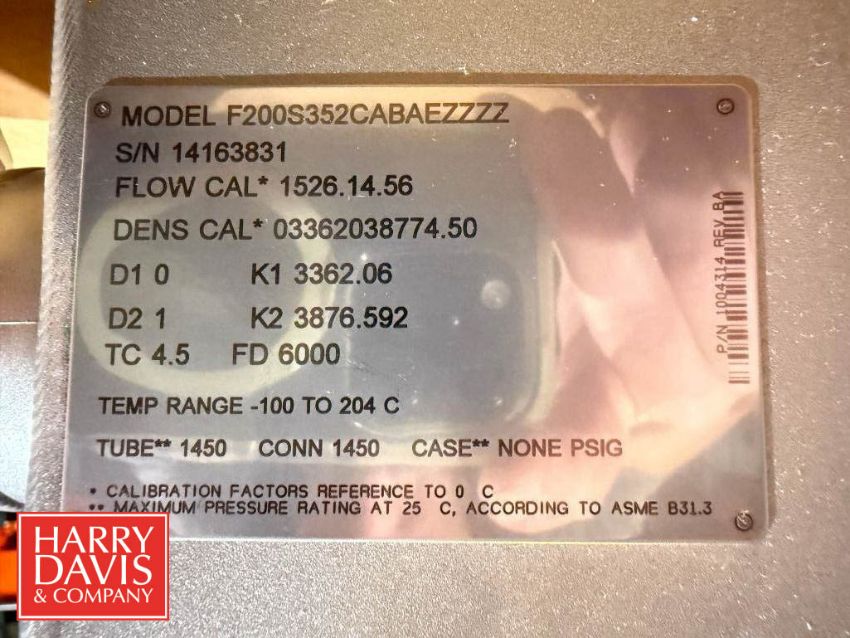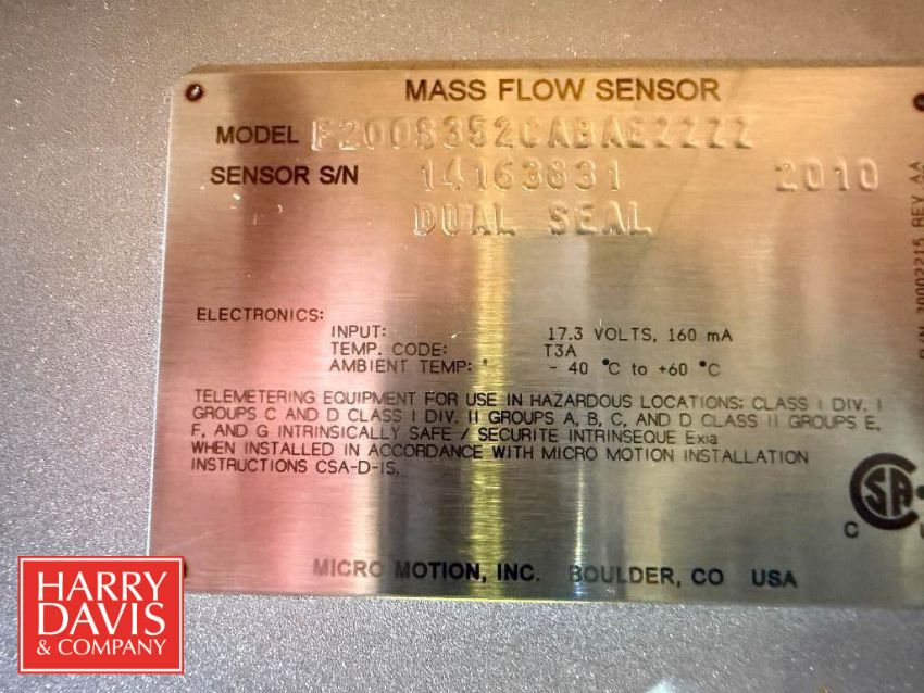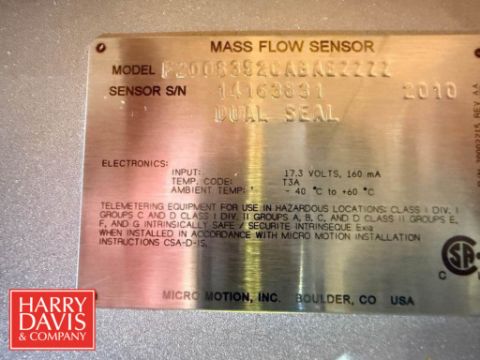 NEW Micro Motion Mass Flow Sensor, Model: F2003352C ABAE ZZZZ