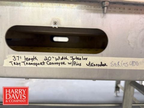 Tray Transport Conveyor: 37’ x 20” with Pins