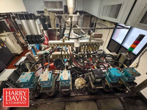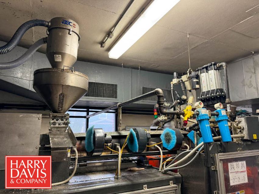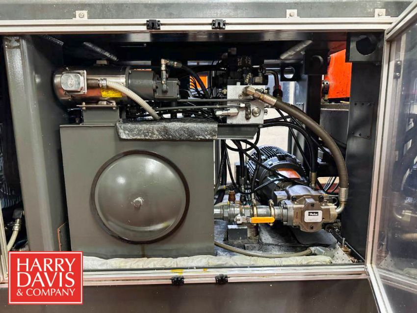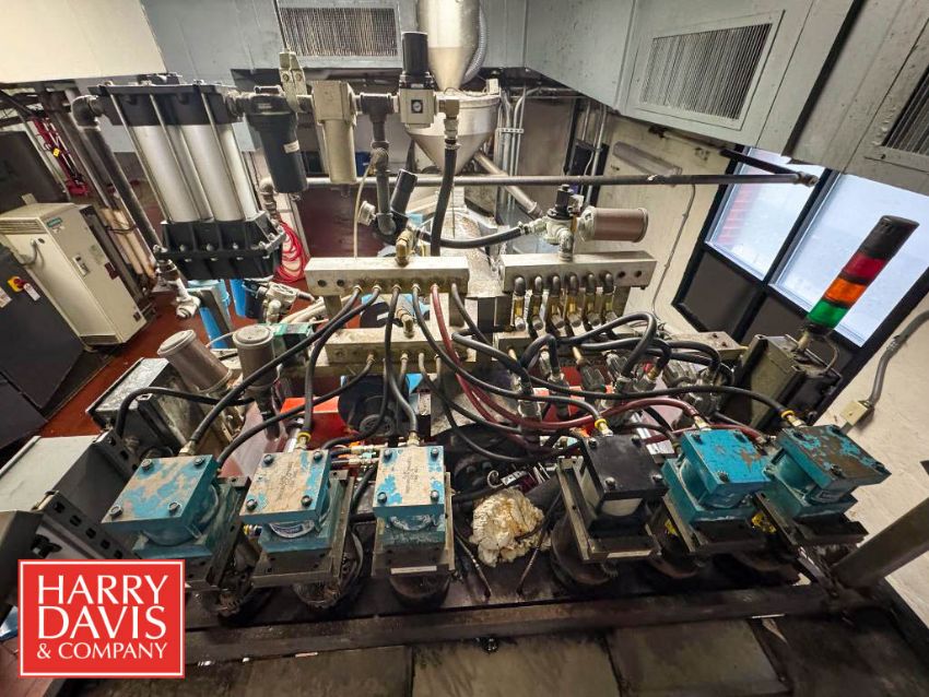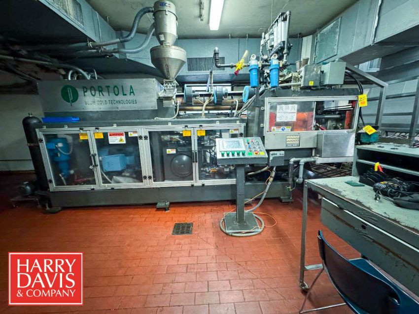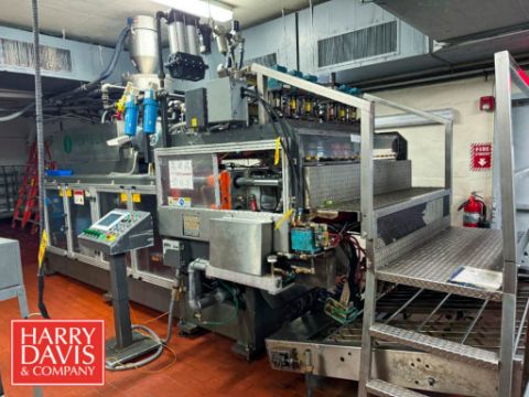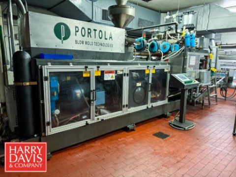 Portola 6-Wide Gallon Blow Mold, Cooling Bed Trimming Tester, Jug Inspection System, Allen-Bradley PLC Controls, Optidrive Variable-Frequency Drive and Duct Work to Regrind