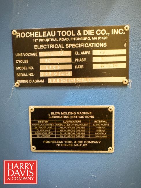 Rocheleau 4-Wide Qt/Pint Blow Mold, Model: SPB3, S/N: SPB3.14.15 (Screw Not Included) (Location: Syracuse, NY)