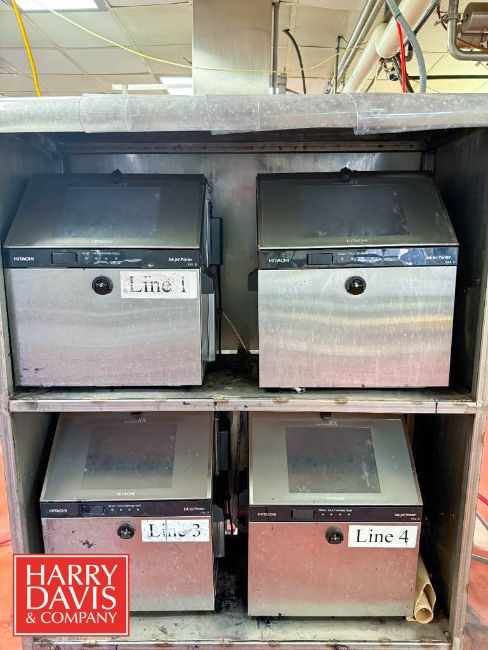 BULK BID (Lots: 157-162) Evergreen N-8 4-Head Filler, Conveyor Merging System, Crate Stacker, Jet 2 NEO Ink Jet Printer and (4) Hitachi Ink Jet Printers (Subject to Piecemeal Bidding)