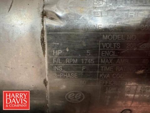 Alfa Laval Centrifugal Pump, Model: 9633406716 with 5 HP 1,745 RPM Motor: Mounted on S/S Base