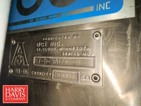 DCI 8,000 Gallon S/S Horizontal Tank, S/N: 87-D-34696-B with S/S Front, Vertical Agitation and Air Valve
