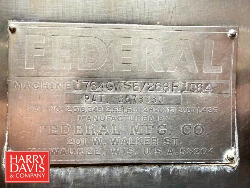 BULK BID (Lots: 164-171) Federal 26-Head Gallon Filling Line , Including: Filler and Capper, Velocity Waterfall Cap Elevator, 70' Single Lane Conveyor, Crate Stacker and Double Wide Crate Stacker (Subject to Piecemeal Bidding)