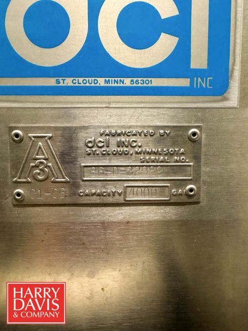 DCI 4,000 Gallon Jacketed Horizontal Tank, S/N: 86-D-32989 with Vertical Agitation