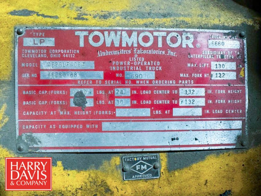 Tow Motor LP 4,000 LB Capacity Propane Fork Truck, Model: 4625LP4024, S/N: 46250788