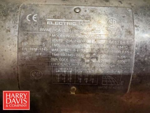 Alfa Laval Centrifugal Pump, Model: 963406716 with 5 HP 1,745 RPM Motor: Mounted on S/S Base