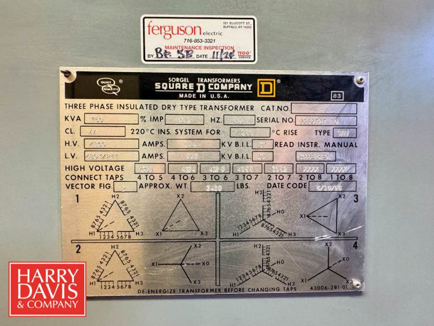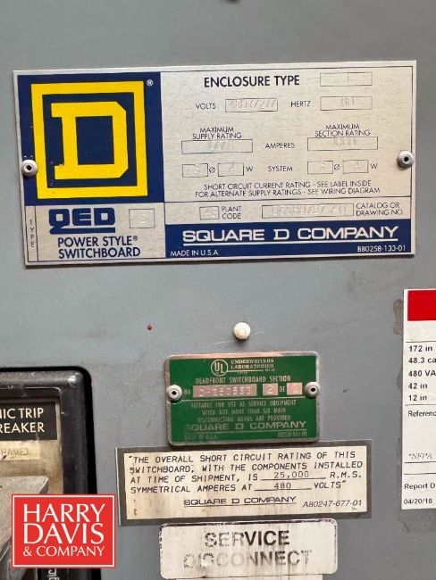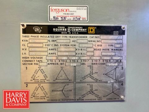 Square D 3-Phase Dry Type Transformer, Model: SHT, S/N: 6589727EO and Square D Power Style Switch Board, Model: 1 Drawing No. 06589727 AO