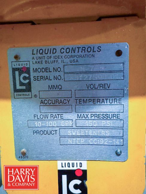LC Liquid Controls Positive Displacement Flow Meter, Model: M-7-5, S/N: 372759010, Flow Rate 10-100 GPM