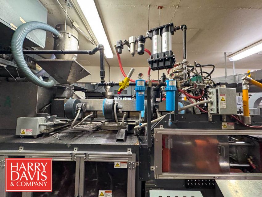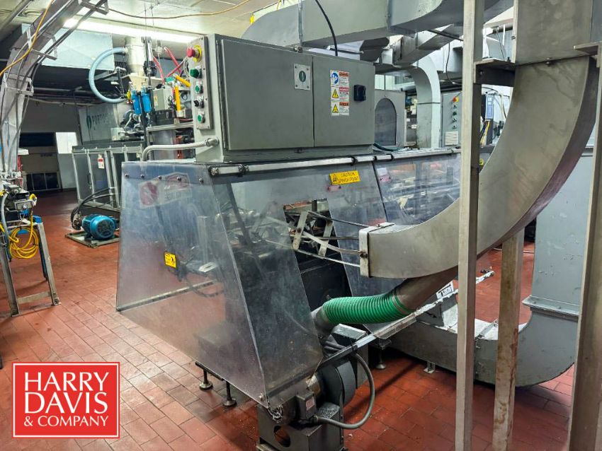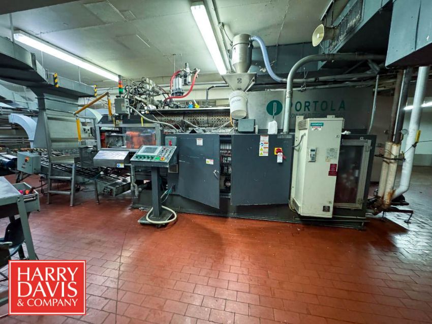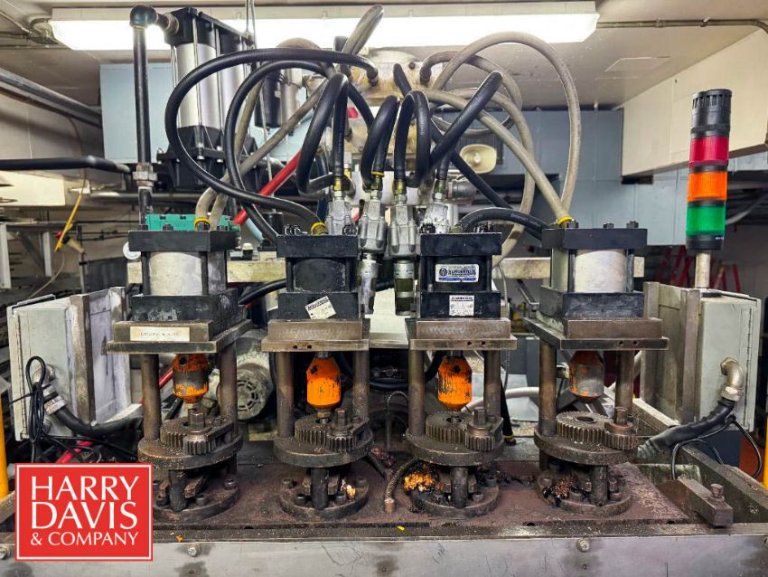 Portola 4-Wide Gallon Blow Mold, Cooling Bed Trimming Tester, Jug Inspection System, Allen-Bradley PLC Controls, Siemens Variable-Frequency Drive and Duct Work to Regrind