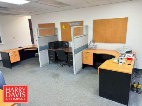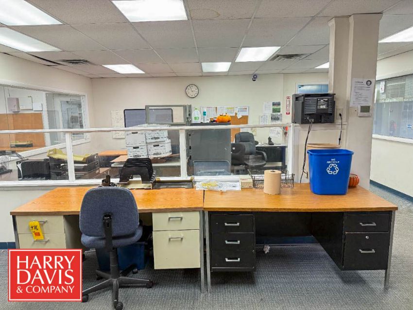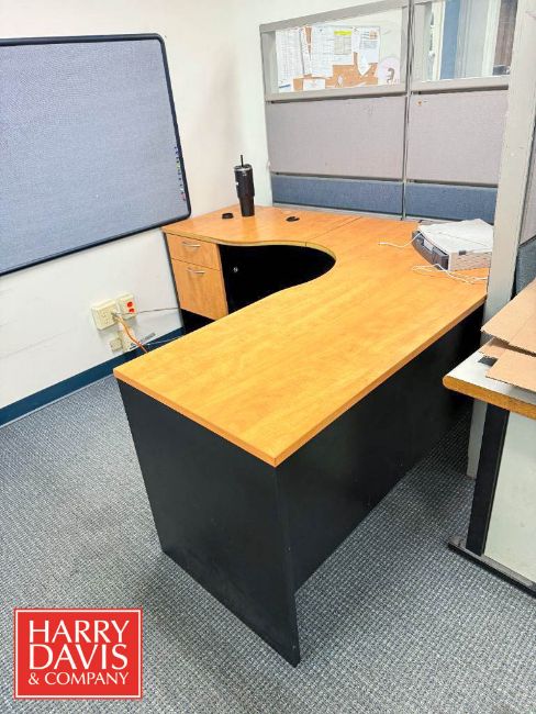 (4) L-Desks, (5) Desks, (4) Office Chairs, File Cabinet and Cubical Sections