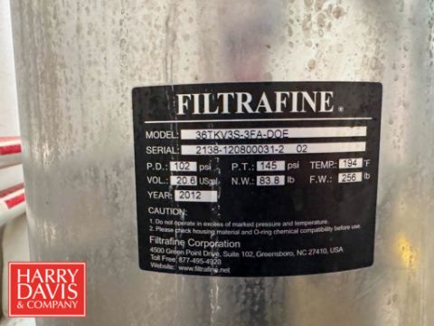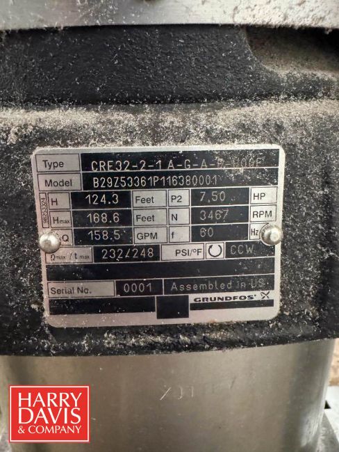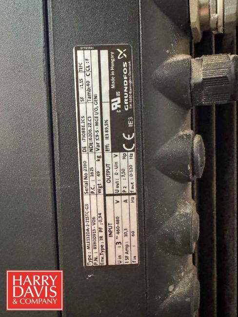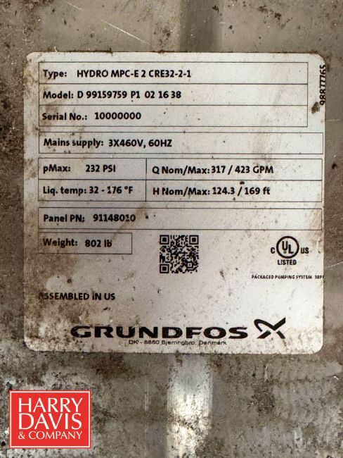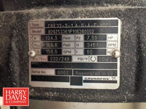 Water Treatment System , Including: (2) Grundfos Booster Pumps 7.5 HP 3,467 RPM Motor with CU352 Controls, (2) Ultrafine S/S Water Filters and Flex2Pro 44 Gallon Potable Water Expansion Tank, Model: WHV165