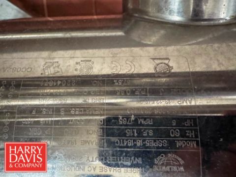 Fristam Centrifugal Pump, Model: FPX 3541-185 with 5 HP 1,765 RPM Motor: Mounted on S/S Base