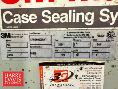 3M-Matic Case Sealing Systems, Model: A20, S/N: 51759 : Mounted on Casters