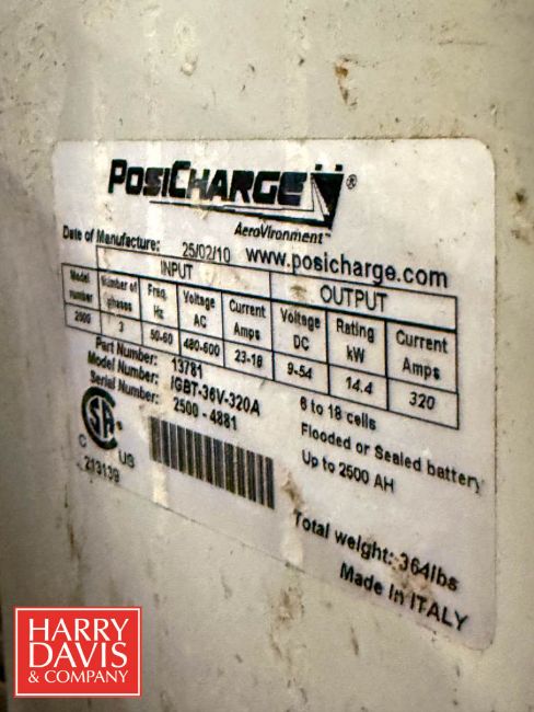 PosiCharge 480 Volt Battery Charger with Eaton Heavy Duty 30 Amp Safety Switch, Model: 2500, S/N: 2500-4881
