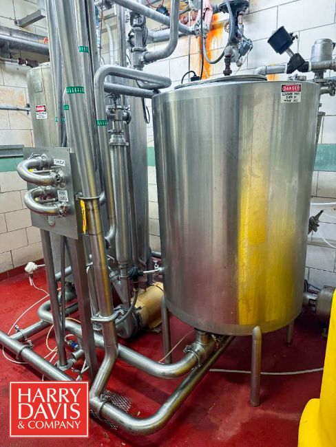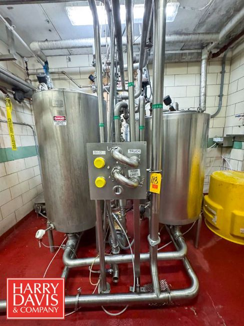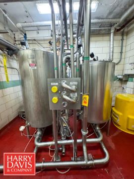 2 x 2-S/S Tank CIP System, Including: Sani Matic, (3) Centrifugal Pump, Angle Line Filters, Valves, Interconnecting Pipe, Flow Panel, Heat Exchanger, ABB Commander 1900, S/S Control Panels and A/O PanelView Plus 1000 Touch Screen HMI