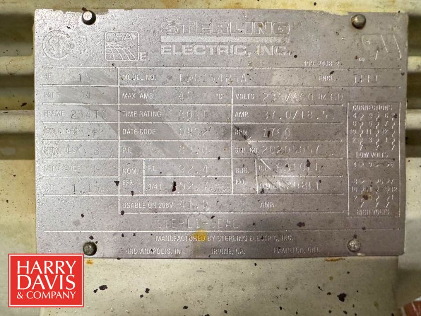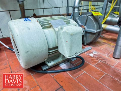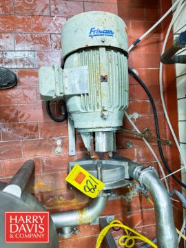 Fristam Centrifugal Pump, Model: FPX 3551 with 15 HP 1,760 RPM Motor : Mounted on S/S Base