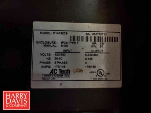 GRAM 100 HP 6-Cylinder Ammonia Compressor with Starter and Oil Filter, AC Tech 125 HP Variable-Frequency Drive and 480 Volt Control Circuit
