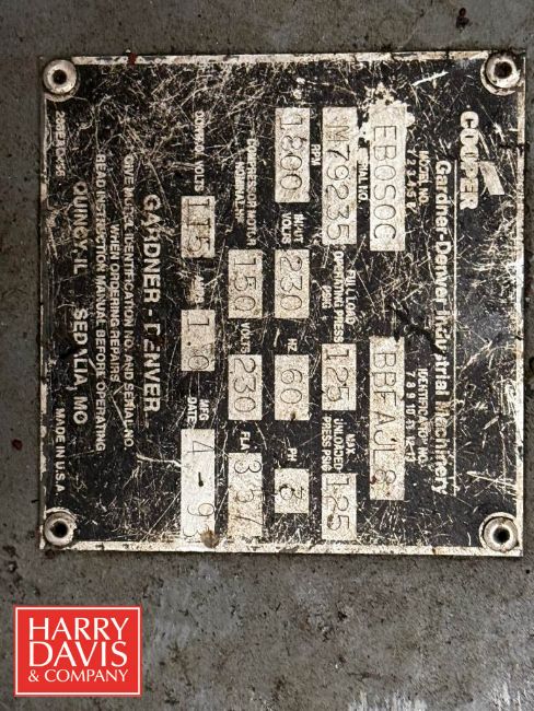 Gardner-Denver Auto Sentry ES Skid Mounted 150 HP Air Compressor, Model: EB050C, S/N: M79235