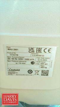 Leybold Roots Vacuum Pump, Model: WAU 2001, S/N: CJL00036722 with 3,600 RPM Motor