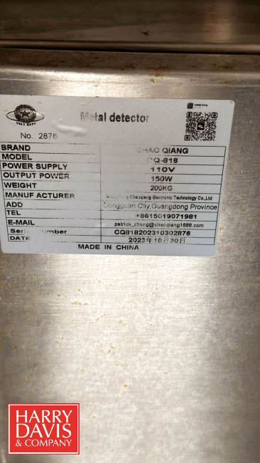 2023 Metal Detector: 59" x 28" x 39", Model: CQ-818, S/N: CQ818202310302876 with 8" x 18" Aperture, Conveyor and Digital Control