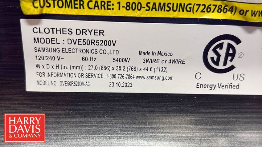 Samsung Electric Dryer Featuring: 27" x 30.2" x 44.6", Model: DVE50R5200V
